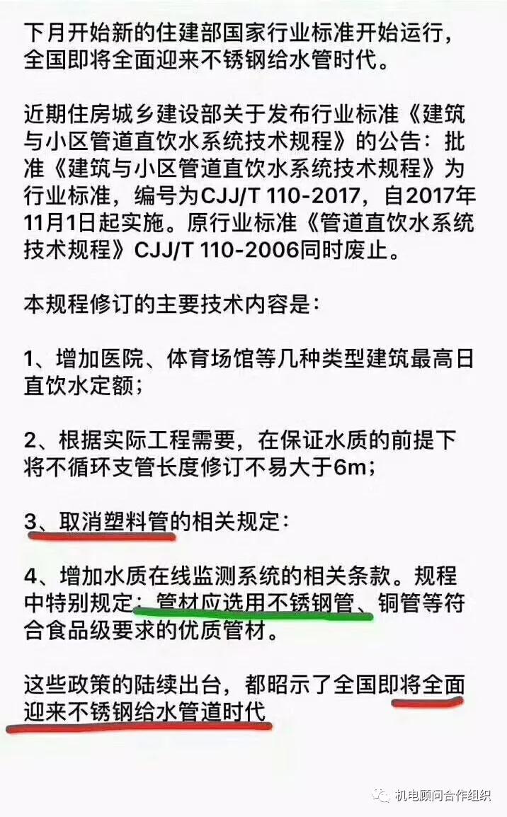 11月1日起,直饮水采用万象城网址管材
